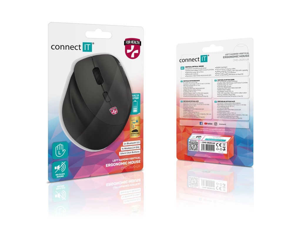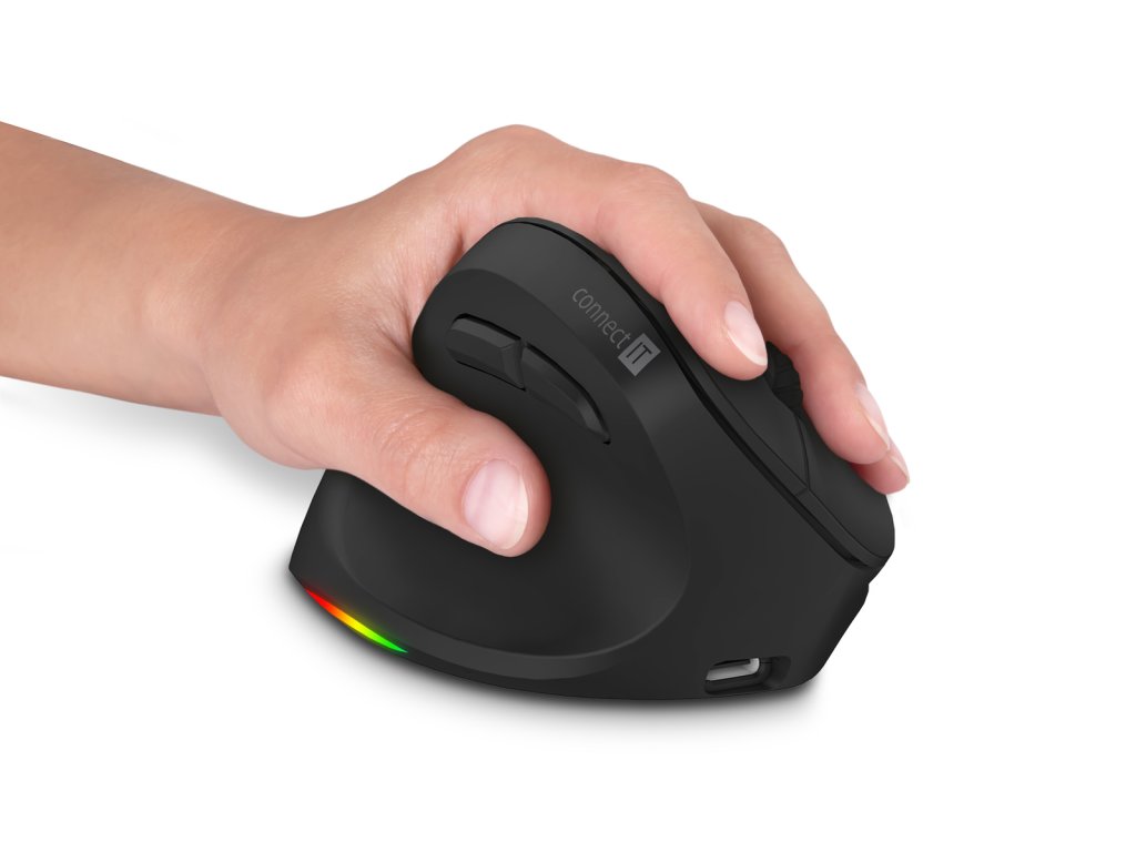 CONNECT IT FOR HEALTH Cloudy Left vertikální myš pro leváky, ČERNÁ