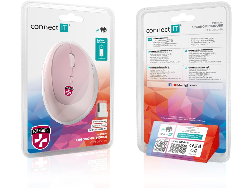 CONNECT IT FOR HEALTH LADIES PINK ergonomická vertikální myš, bezdrátová
