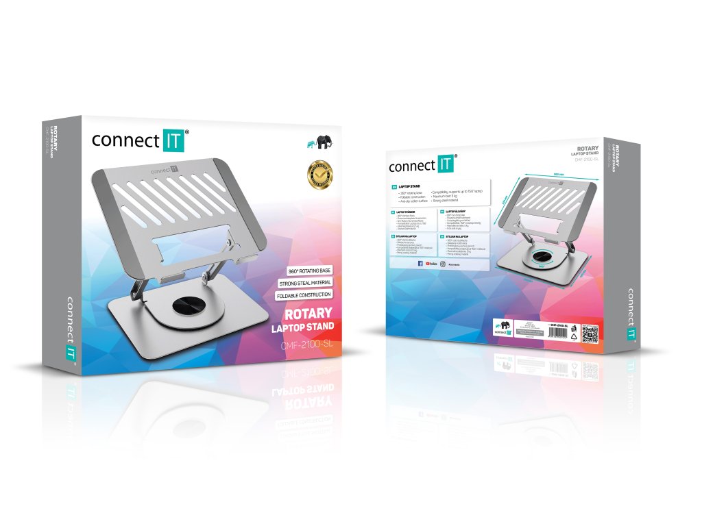 CONNECT IT Rotary otočný stojánek na notebook, STŘÍBRNÁ