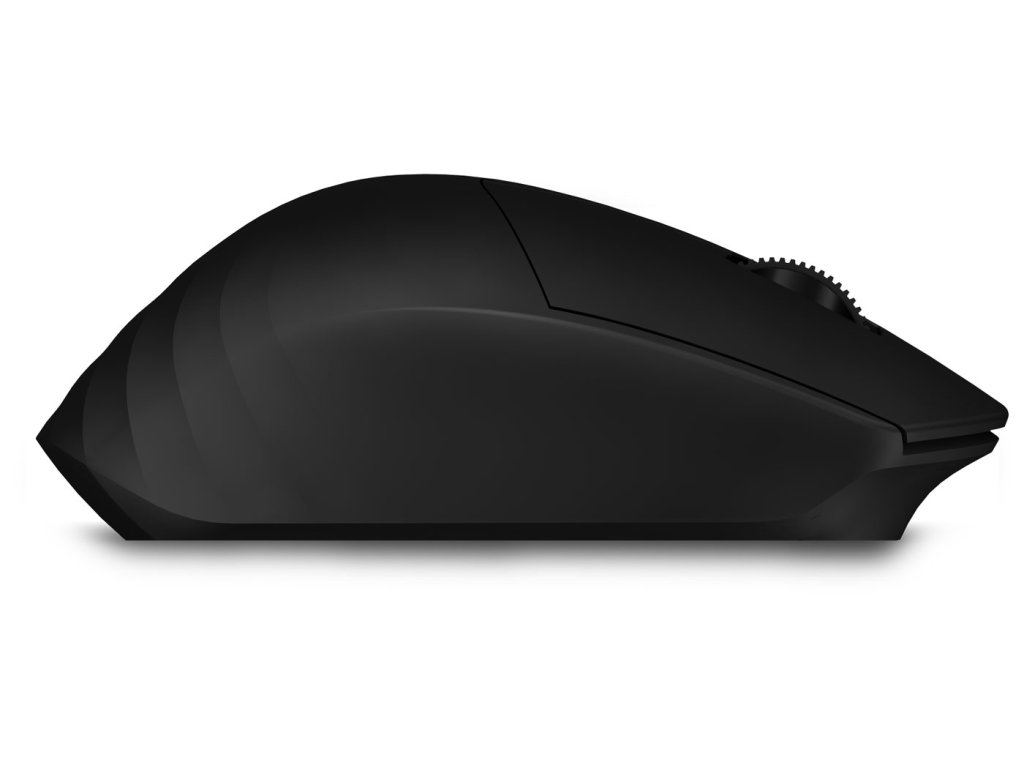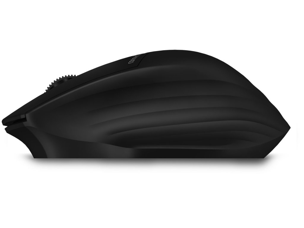 Kancelářská tichá bezdrátová myš se třemi bezdrátovými profily podporujícími standardy BT 5.0, 3.0 a Wirelless 2,4 GHz vybavená 2 tichými tlačítky MuteButton, posuvným kolečkem a tlačítkem pro přepínání bezdrátového módu.